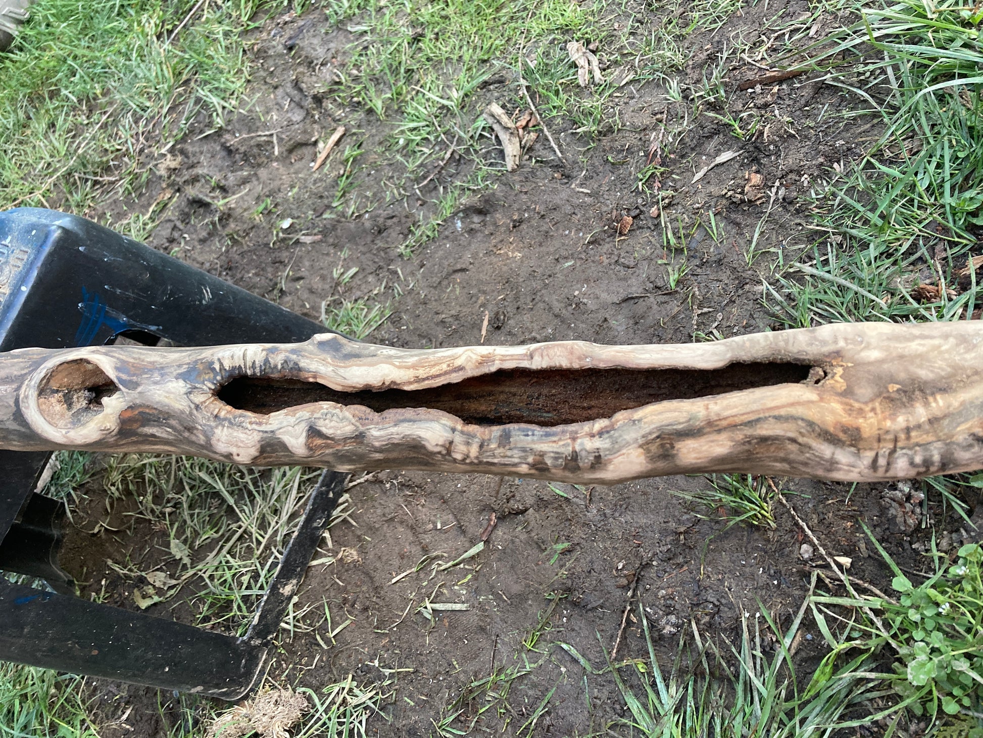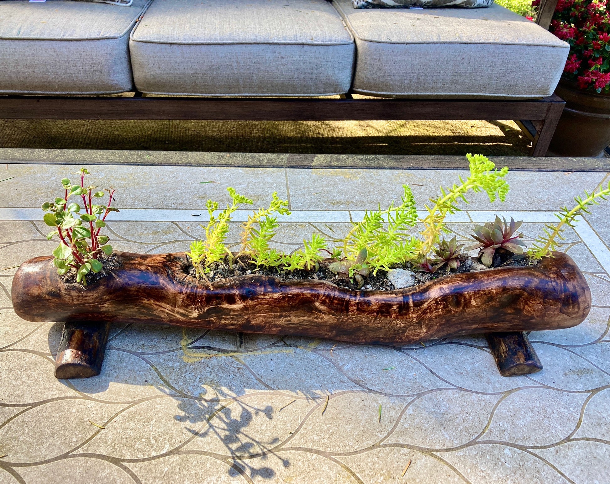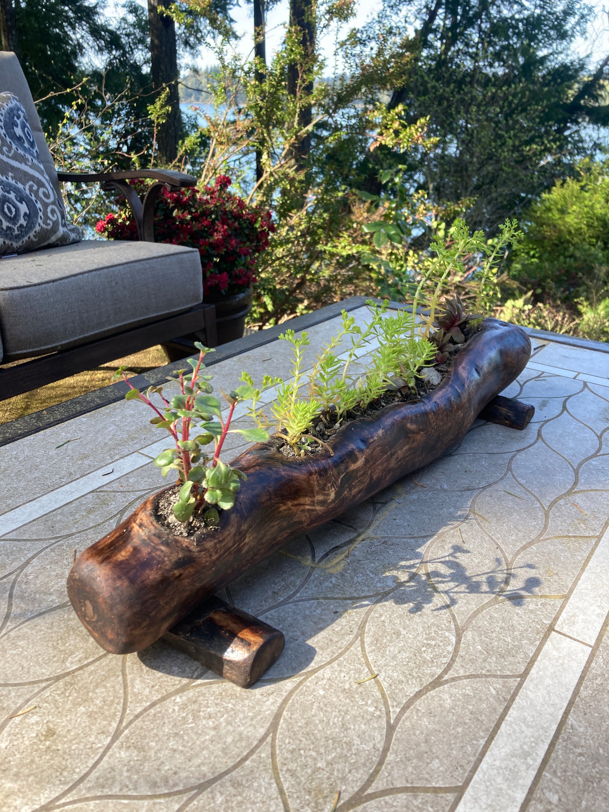 Foraged storm debris; carved, hollowed, sanded, and finished. Maple limb converted into succulent planter.