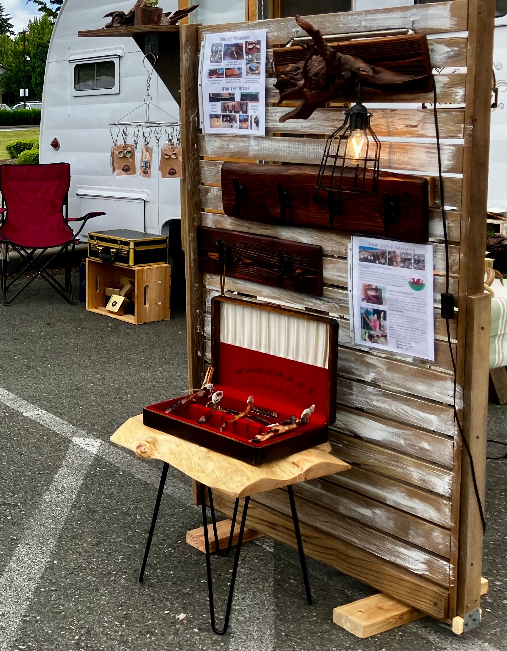Roughly 2 1/2 feet by 2 1/2 feet this blonde Maple table offers loads of style with the bonus of flexible staging. Live edge details on both sides allow for multipurpose use: coffee table, side table, plant stand. Hairpin legs give it that mid-century modern aesthetic.
